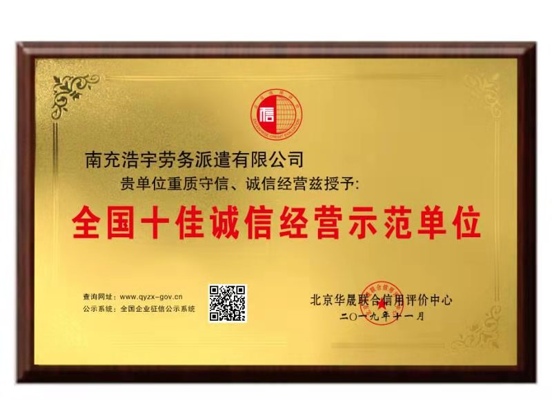 我公司獲得全國十佳誠信經(jīng)營示范單位