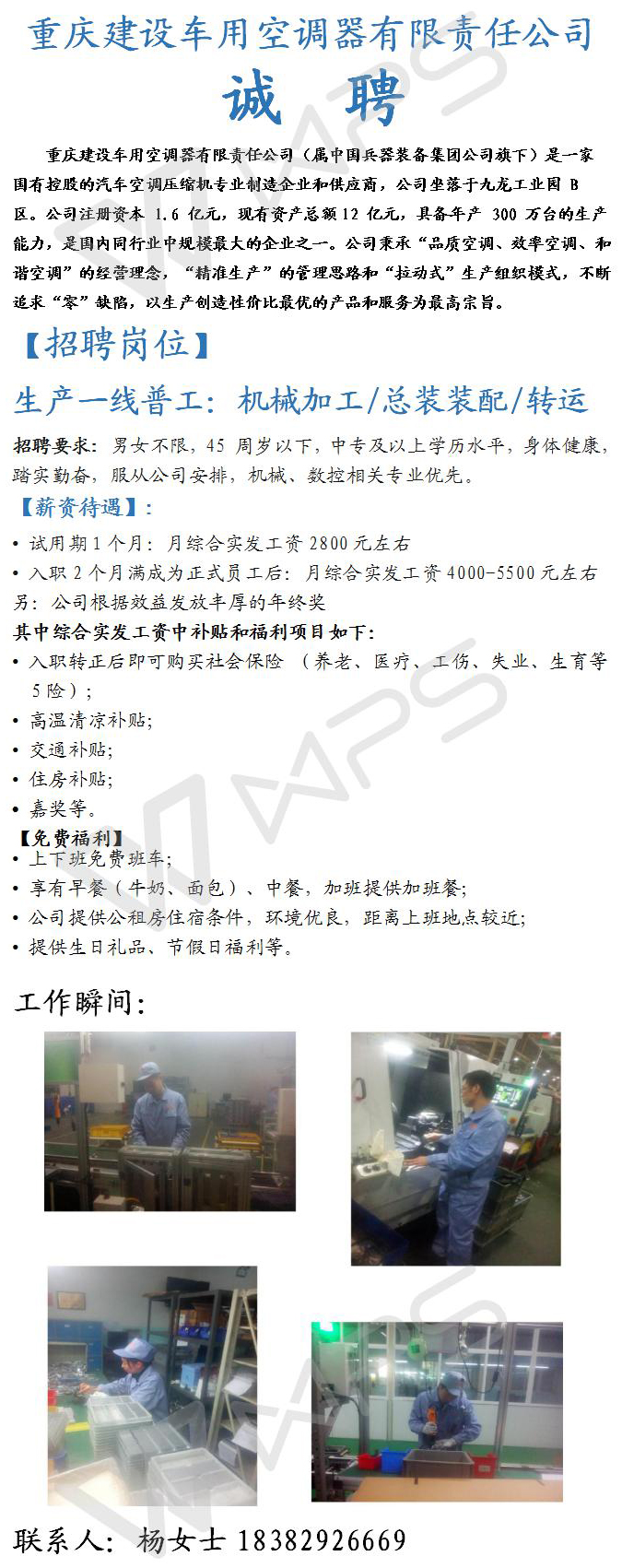 | 車(chē)間普工:機(jī)械加工/總裝裝配/轉(zhuǎn)運(yùn) | 20 | 重慶 |